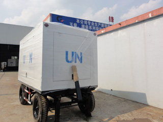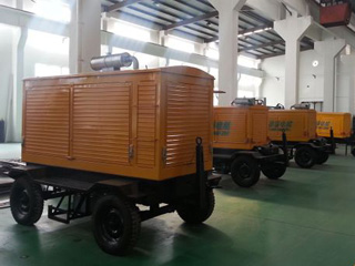 拖車車架采用槽梁焊接成框架結構,節(jié)點選擇合理、強度高、剛性好;同時裝有鋼板彈簧懸架結構;拖車采用高度可調節(jié)插銷式牽引架,適用于各種高度牽引車;采用圓形鋼管焊接直通式車軸,結構緊湊,安全可靠;車架四角設有機械式支撐裝置,配備慣性行車制動、駐車制動和脫離應急制動,確保機組在各種狀況下的安全;車架前端設有支撐輪,具備承受機組垂直載荷的功能的同時還具備導向功能;整車配備轉向和剎車指示燈,同時裝有尾燈標準插頭。